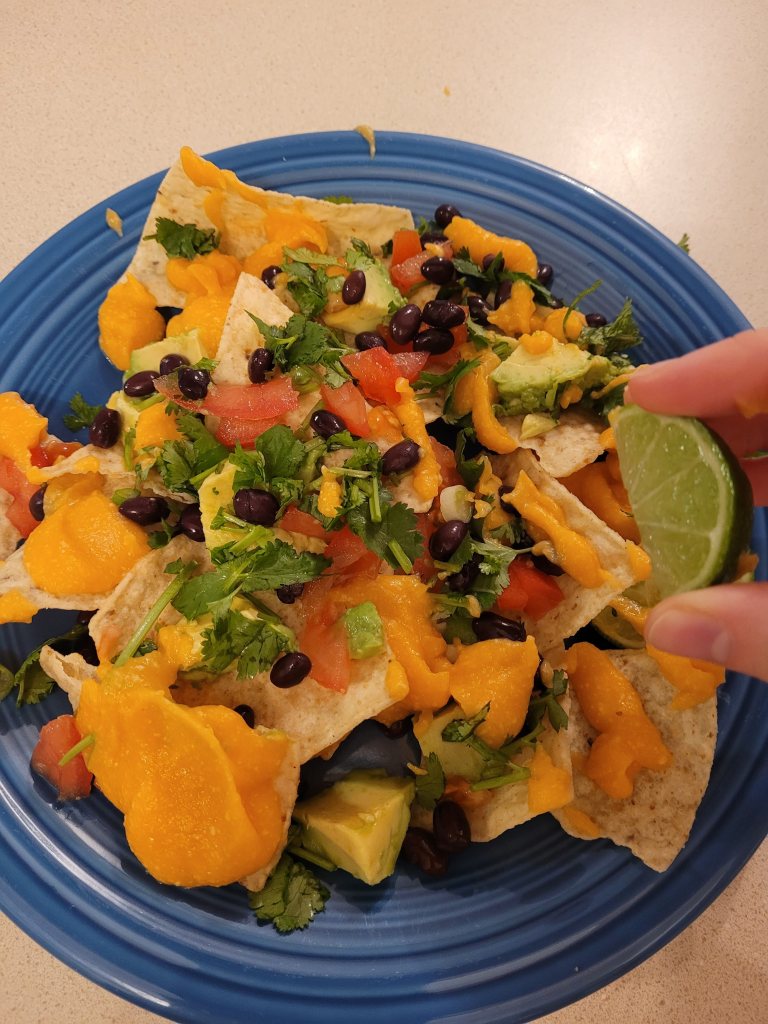Next, I love to add black beans to a lunch or even snack if it’s a crazy time and you’re hungry. This orange sauce is actually vegan nacho cheese by Earthy Andy! It’s made from carrots! It’s amazingly creamy and good! You can blend some up and reheat for a lunch or even as an appetizer at dinner.