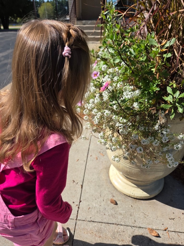Earlier that morning, I woke up with my one-year-old and started making homemade cinnamon rolls. The plans for the day were to take my oldest daughter to get her first haircut, and get mine cut as well. When she woke up, she helped me sprinkle the sugar and cinnamon filling, and cut and roll the yummy sweets. We baked them, and frosted them, and ate one, then rushed off to our haircut appointment.