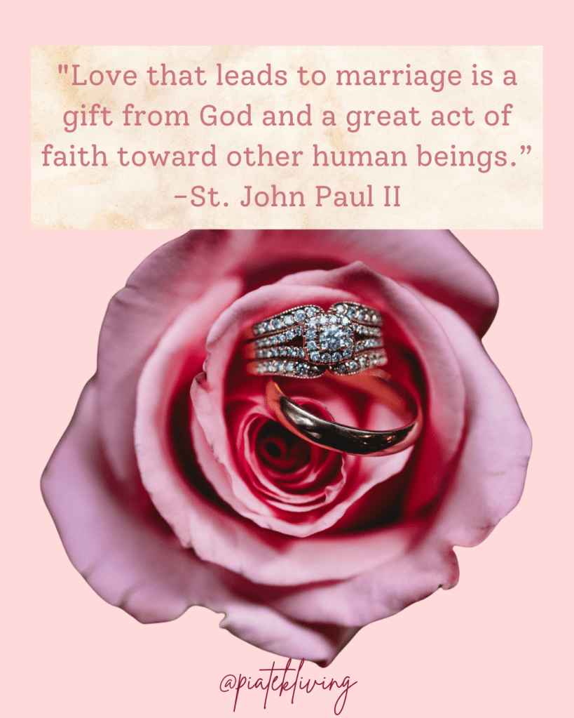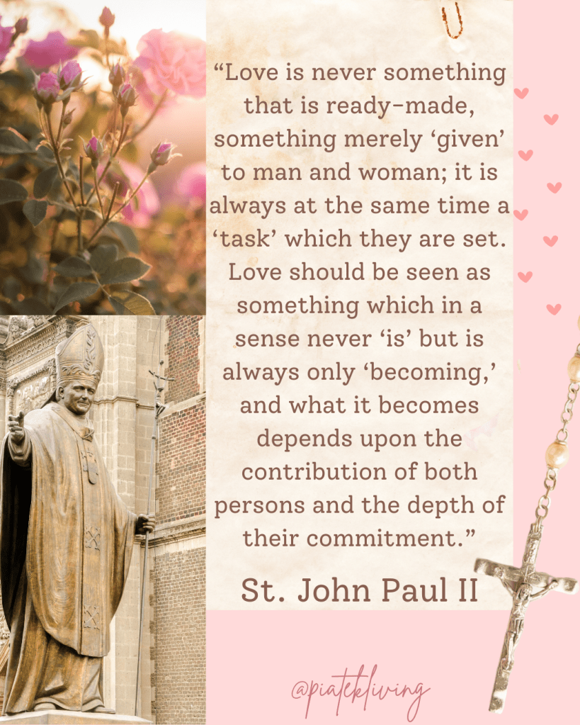 As we approach the Feast day for St. John Paul II on October 22, I found it very fitting to include some of his beautiful wisdom. My husband and I choose every day to make our marriage what it is. It is work, not something that is just given to us. We have to choose every day to work on our marriage. My husband and I have been working so hard raising our babies and showing them how to pray. She now says Hail Mary, Now I Lay Me Down to Sleep bedtime prayer, and we are working on The Our Father, Lord’s Prayer with her. This little moment, our daughter’s first prayer, is one we will remember forever.