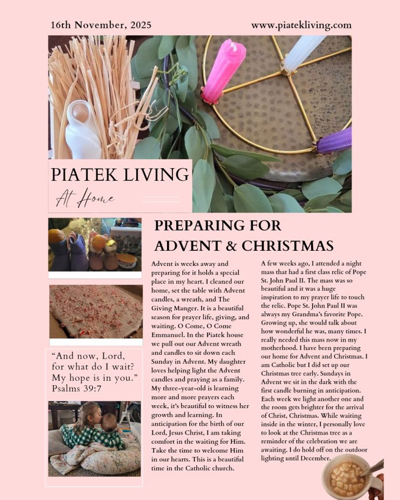 Thank you to all my readers! Praying you all have a peaceful, prayer-filled Advent. Open your hearts to Jesus this season and find hope in the waiting. What are some Advent traditions you do with your family?