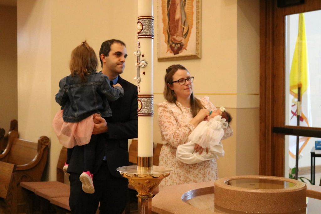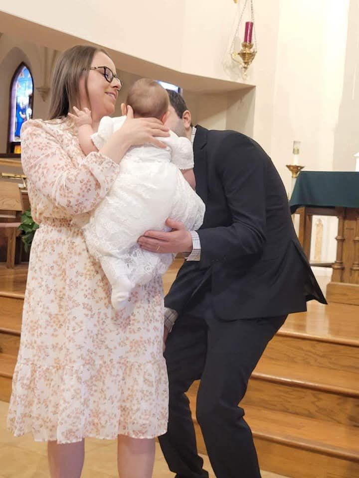 This photo above was at our first child’s baptism. Yes, I wore the same dress for both my daughters’ baptisms. It is easier when they are first born rather then waiting until six months old, like we did here. I love this photo, though, because it is the start of our journey. We then both entered the Catholic church fully all for the love of Jesus, our daughter, and our family. How great is God? I thank Him every day for this journey. For giving me purpose and showing me true love and beauty. Baptism is far more than just pouring of water and anointing of oils. It’s the Holy spirit entering our soul. It is the saving of a soul. It is love for your child. It truly is the greatest gift parents can give their child.