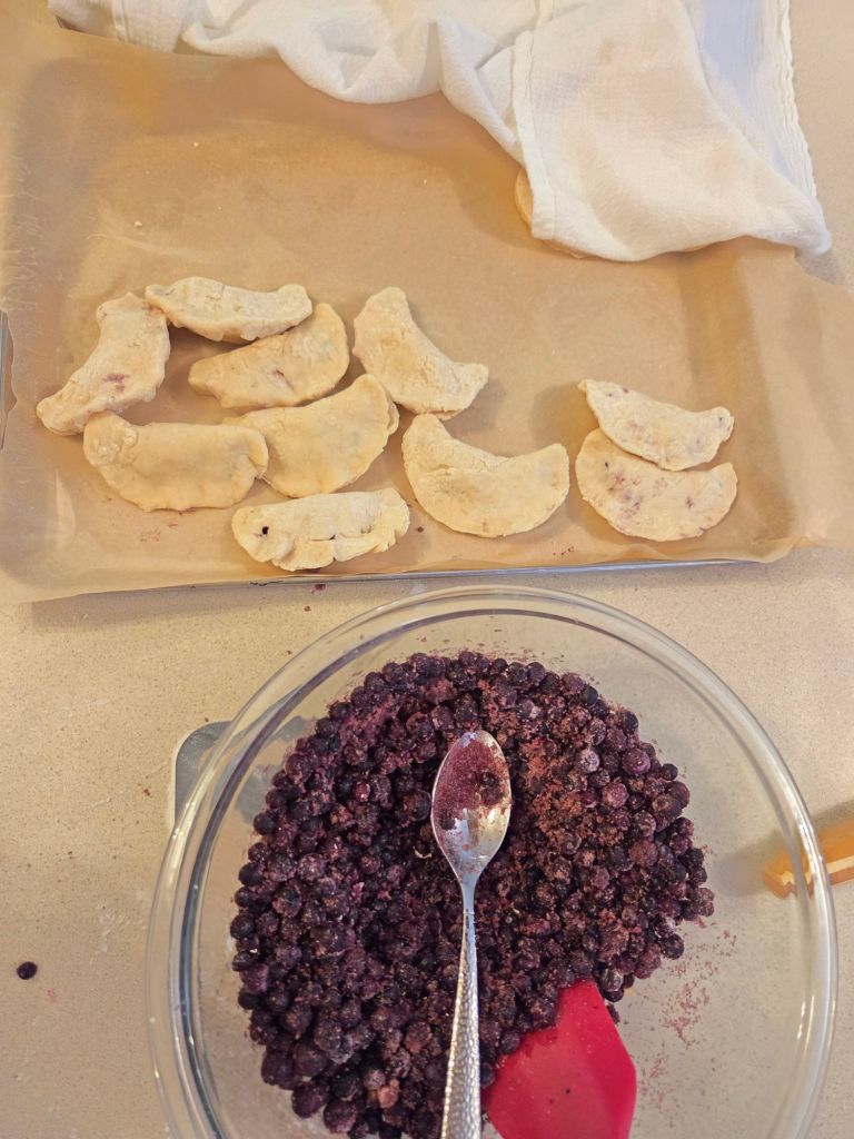 Thanks to Renee, I finally made pierogies! And they are amazing! I was having trouble closing up the dough to keep the filling in when I remembered as a kid my grandma told me to dip your fingers in water and fold the dough closed. I’m not sure if that’s a thing, but I did it, and it worked beautifully! Renee’s family uses sweet cheese, traditional Polish. Since I couldn’t get my hands on it because of the severe cold weather, I decided to use yogurt and cool-whip. Once I get my hands on the farmer’s cheese and Polish pudding I will try it, and give an update.